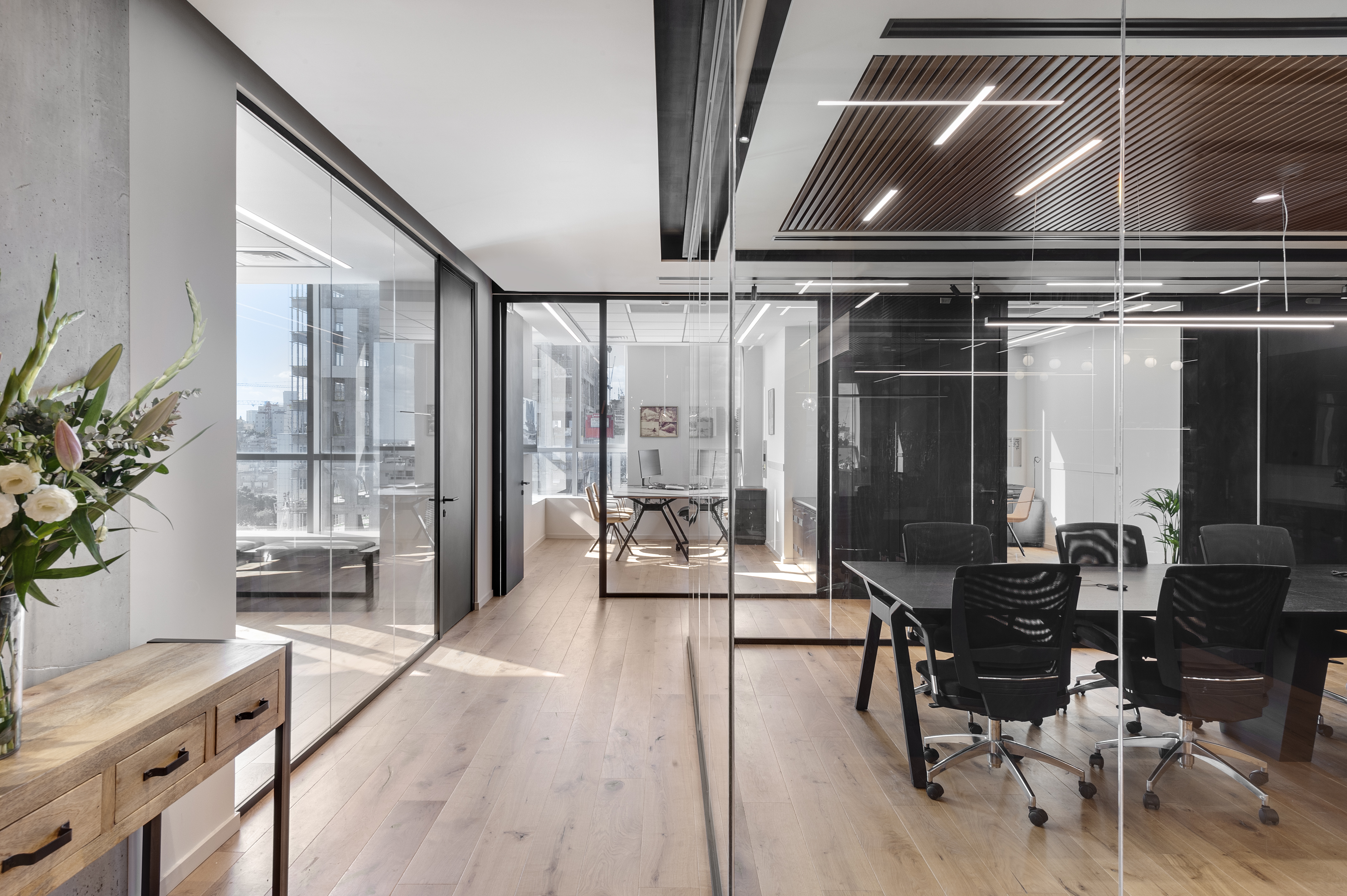 עיצוב ותכנון משרדי תשרי רותם יזמות בבניין בר כוכבא בבני ברק.