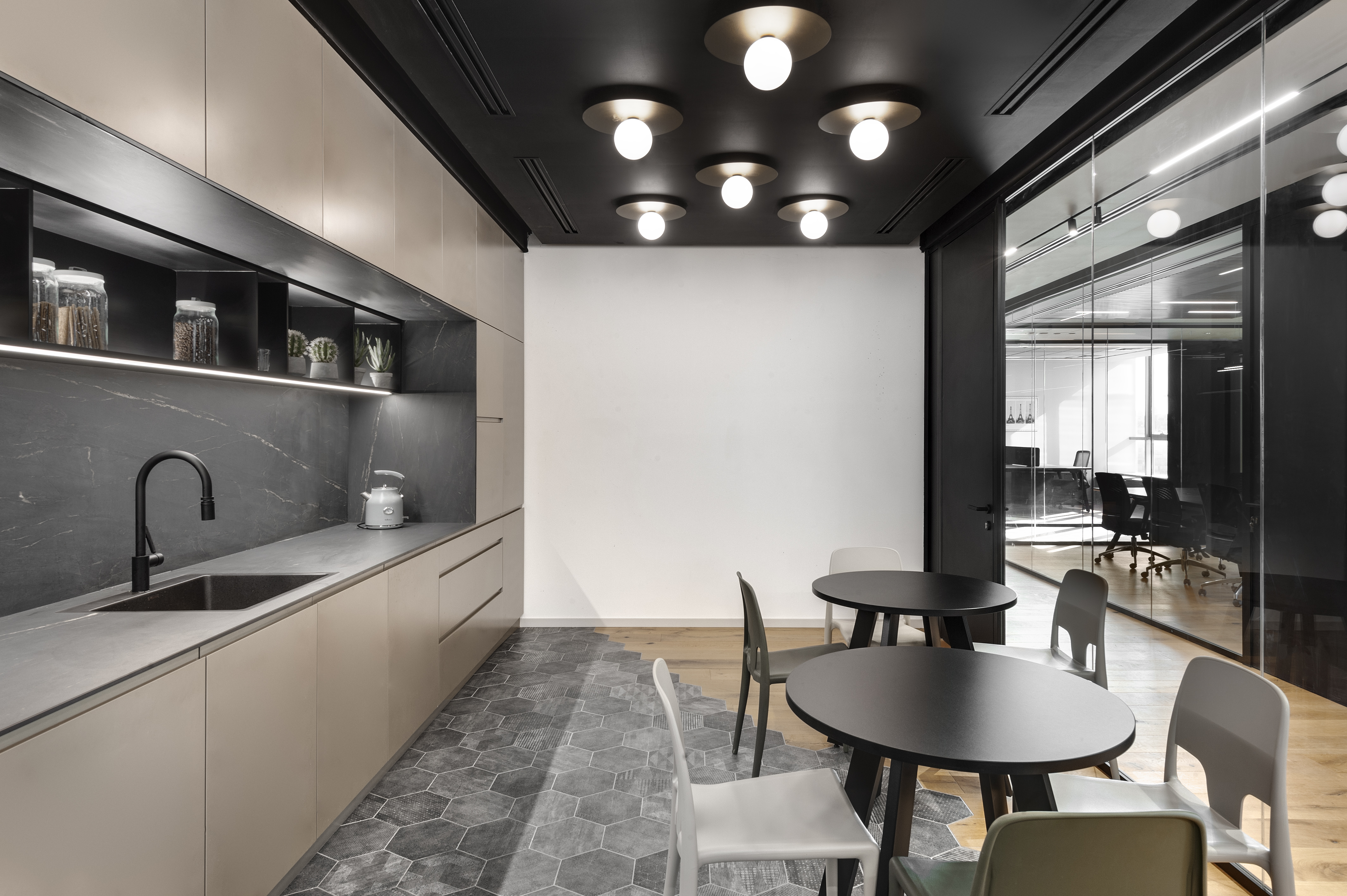 בפרויקט זה תוכנן ועוצב משרד חברת תשרי רותם יזמות המתפרש על פני 488 מ״ר.