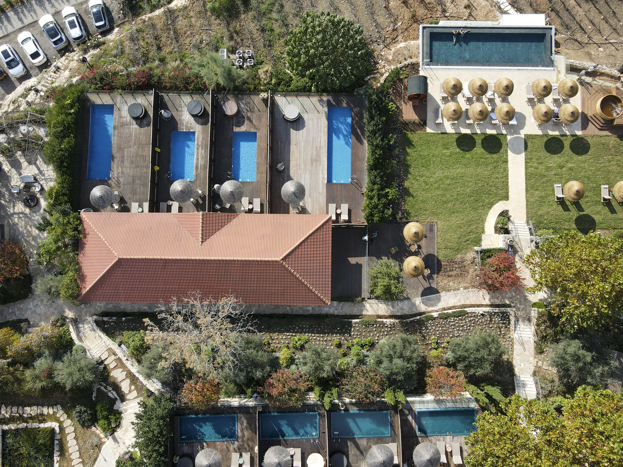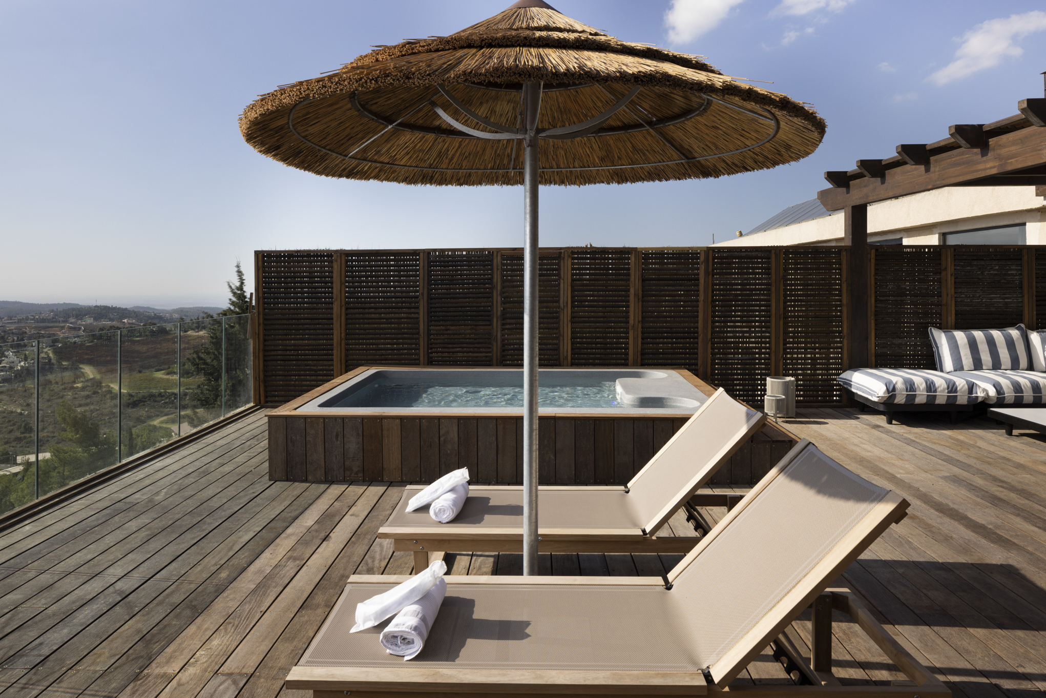 הכל תוכנן בקפידה בכדי לתת לאורחים תחושה של סינרגיה כבר מהכניסה ללובי, דרך מסדרונות הבניין ועד לחדר עצמו. שילוב של גוונים חמים אך בהירים, פרטים יוקרתיים ושימת דגש על נוחות ופינוק. והכל על רקע הנוף המשכר של היערות, הכרמים וההרים.