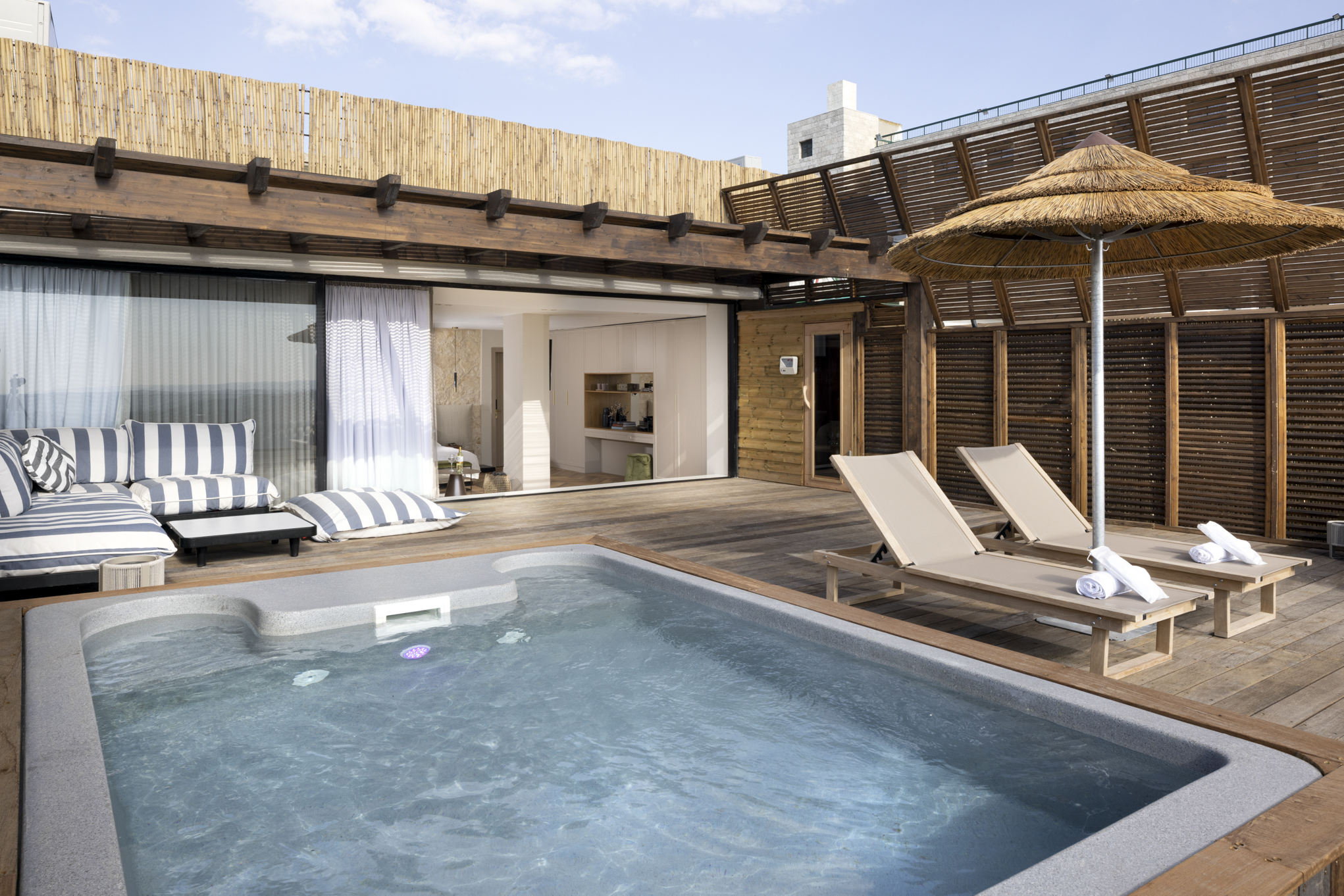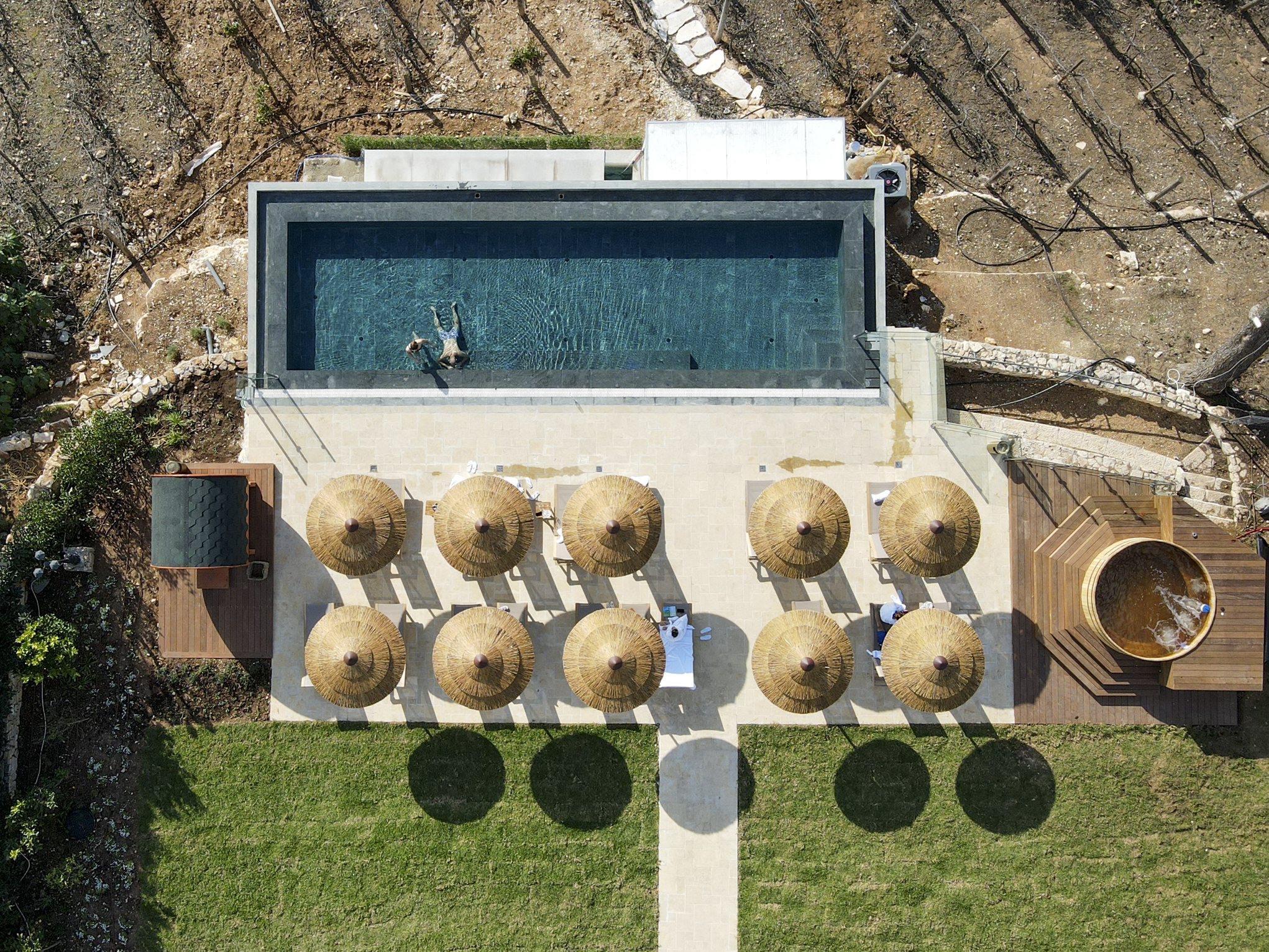 כל חדרי המלון עוצבו בשילוב של אבן טבעית מקומית בקירות, רצפות פרקט חמימות בחדרים, מיטות מפנקות שפונות לנוף או לבריכה, אמבטיות עצמאיות שמאפשרות לך להתפנק ולבהות בנוף הממוסגר בחלון.