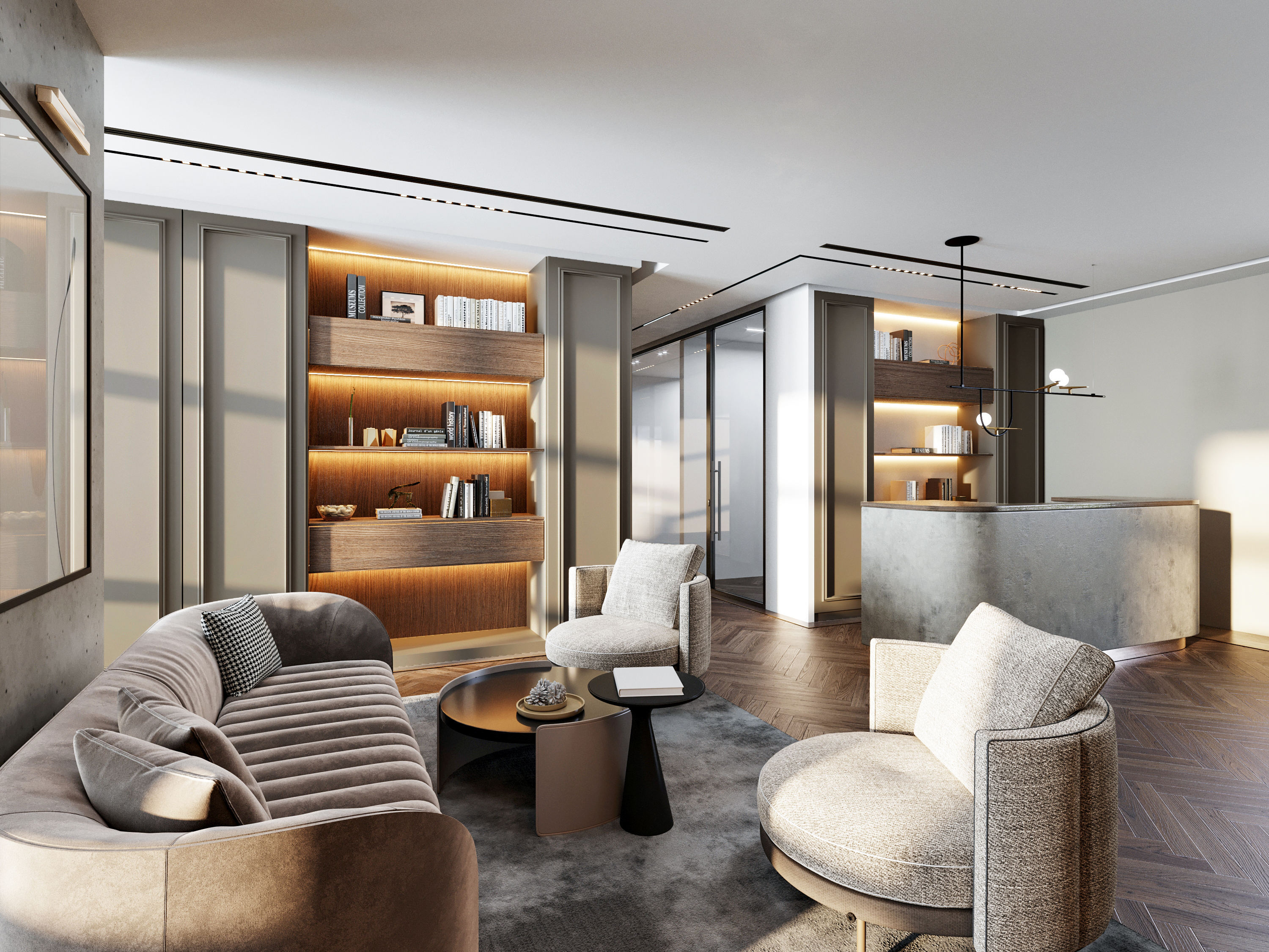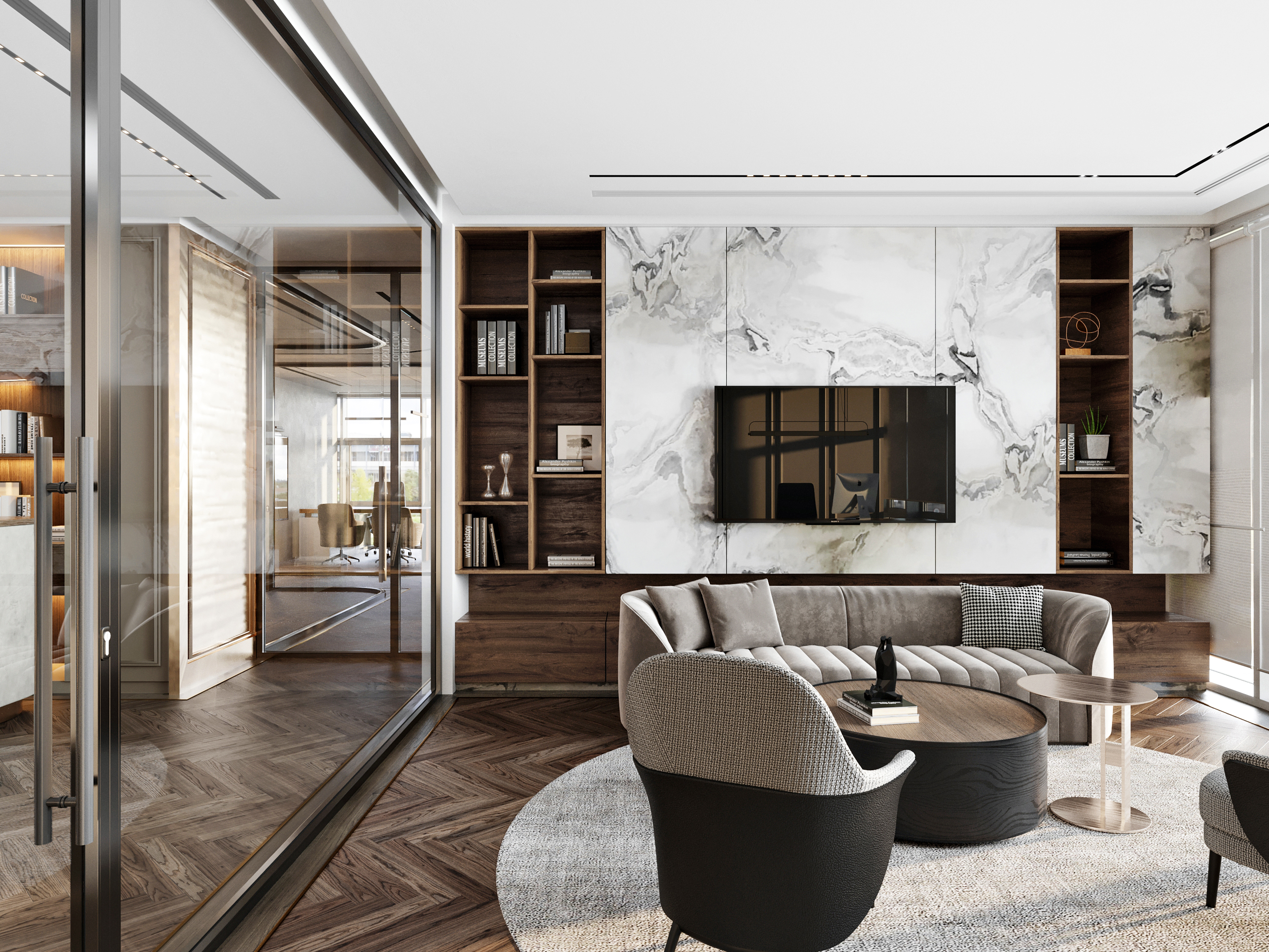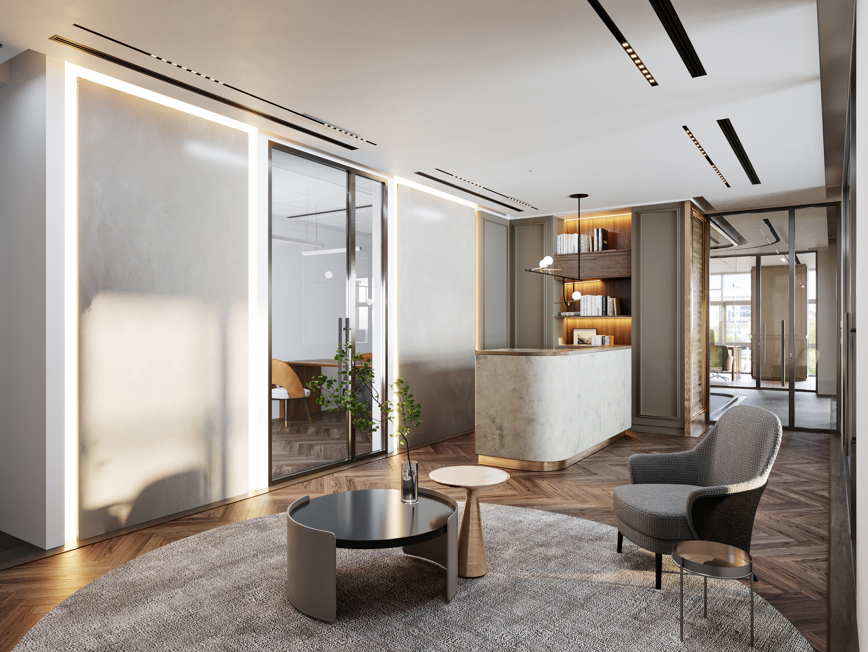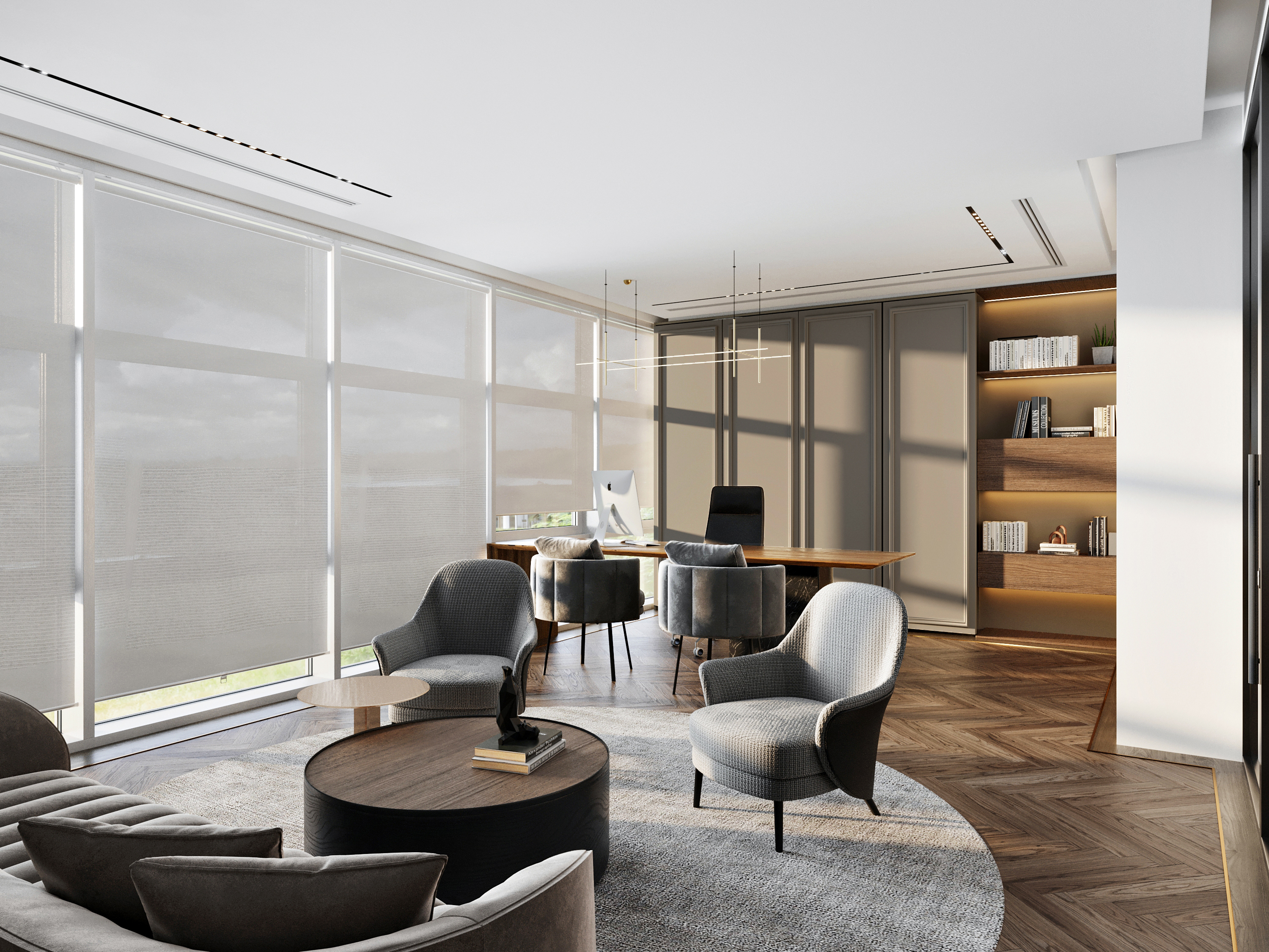 משרד הזה תוכנן בסגנון קלאסי מאופק כדי לעשות תחושת רוגע ושלווה
