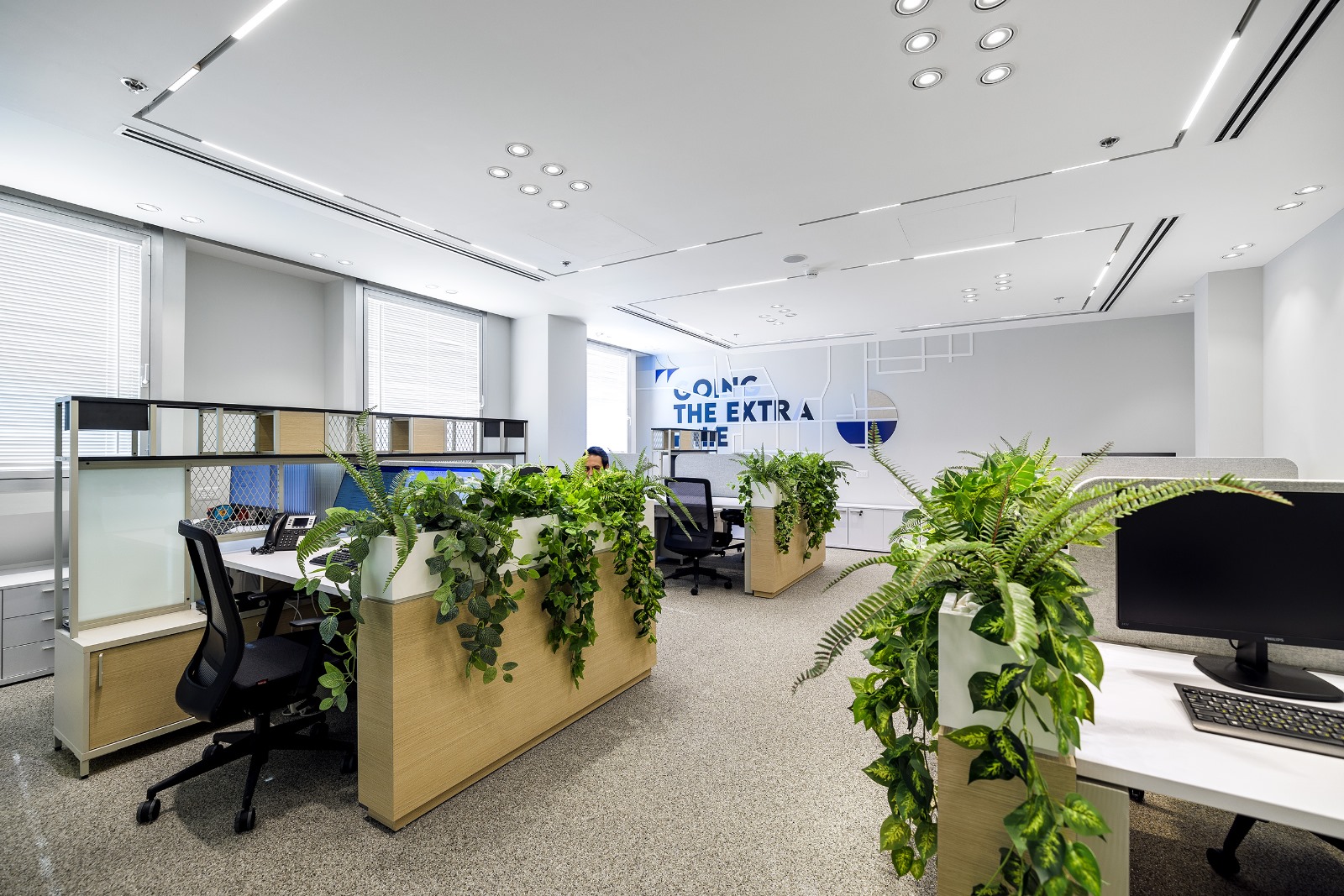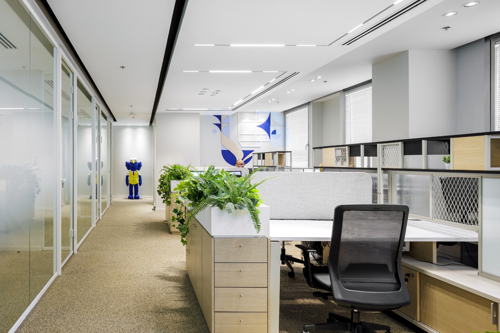 המשרד הזה תוכנן בסגנון טבעי ומרענן כדי לתת תחושת שלום